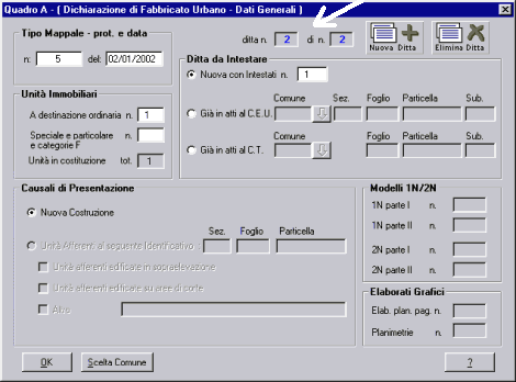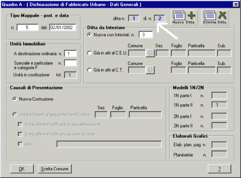 Nell'eventualità di un fabbricato costruito su due o più particelle con intestazioni diverse, è necessario procedere a distinte dichiarazioni di nuova costruzione, ciascuna con la corretta intestazione e con la quota parte dell'unità immobiliare associata a ciascuna ditta (principio dell'accessione).