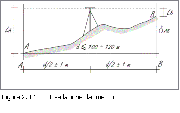 Si tratta solo la livellazione dal mezzo che si esegue ponendo il livello in posizione intermedia tra due stadie, poste tra loro ad una distanza inferiore a 100÷120 m.