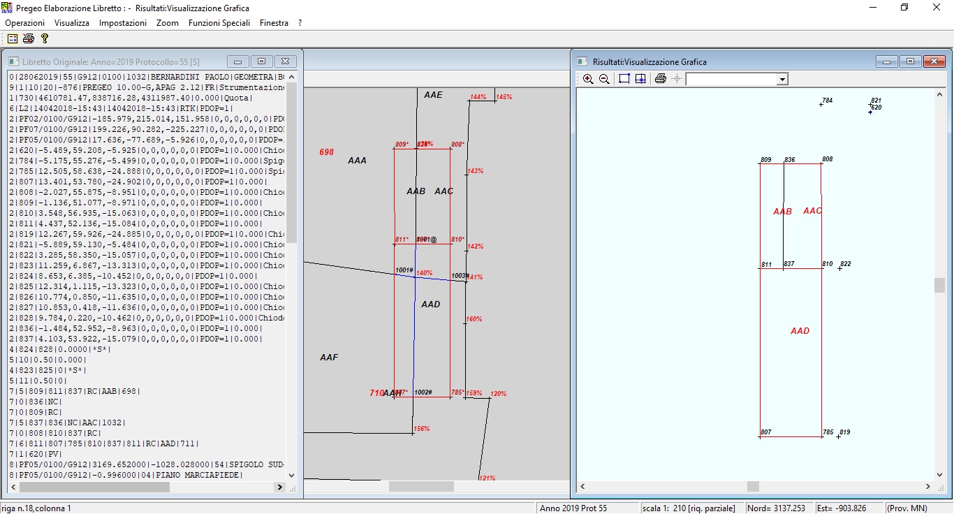 Nell’esempio successivo la particella 877 viene frazionata e due delle quattro derivate assumono la Superficie Reale in quanto interamente rilevate.